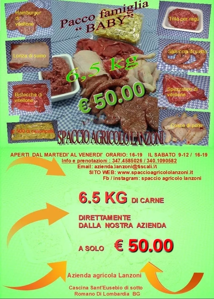 Hamburger di vitellone – Trita per ragù – Lonza di suino – Salsiccia di suino – Bistecche di vitellone – Spezzatino di vitellone – Cosce di pollo – Casoncelli 500gr